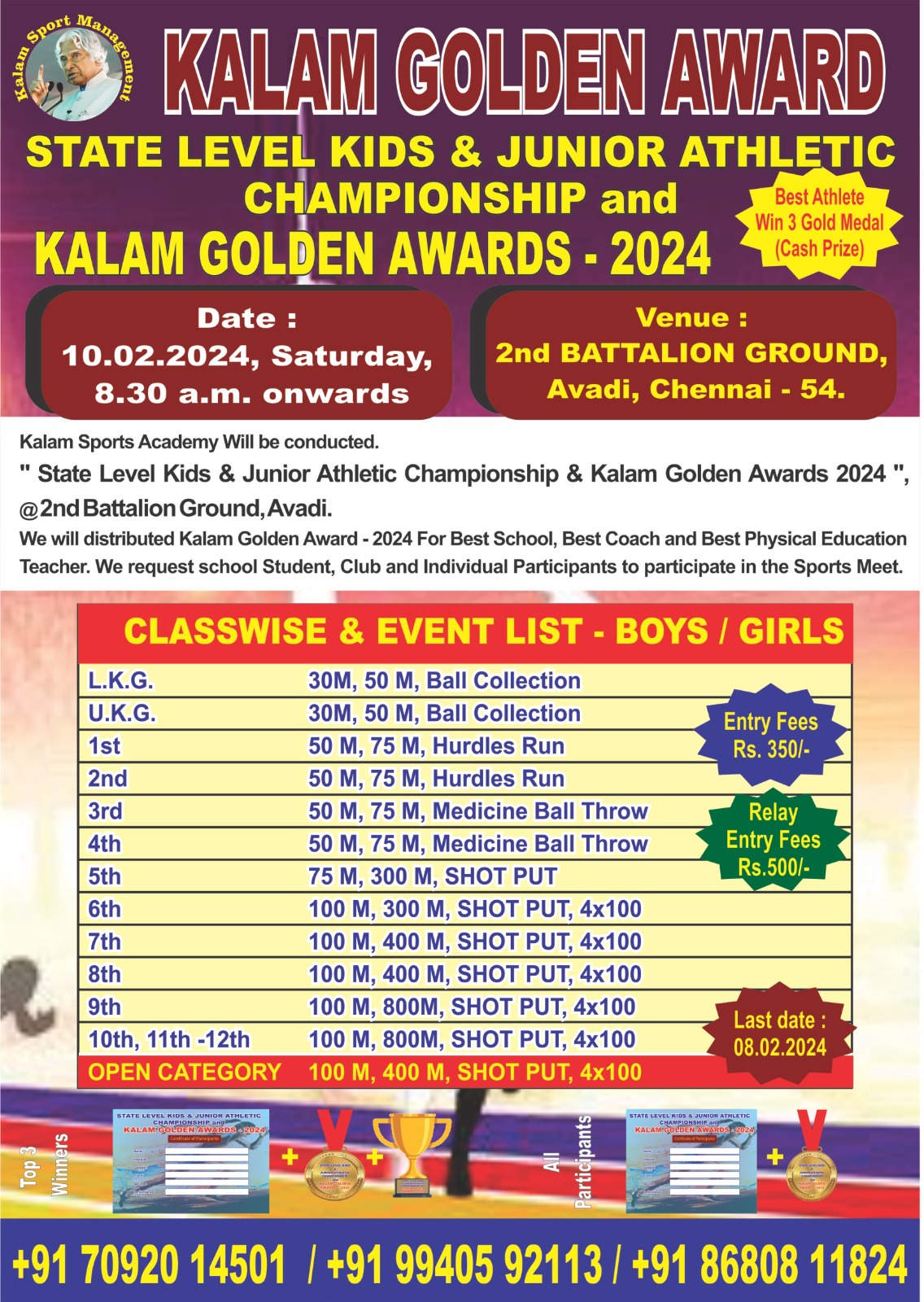 Kalam Golden Awards 2024: State-Level Kids & Junior Athletics Championship